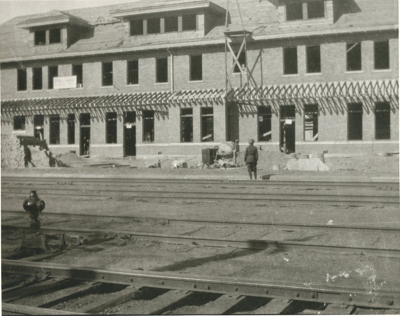 This structure is of brick, two stories in height, with slate roof, 43x282 feet in extent and which is located just south of the main track. In this building are the offices of the Master Mechanic, Master Car Builder, Draftsman and Clerks’ offices, a large and nicely furnished Free Reading Room and telegraph and storekeepers’ offices on the ground floor.