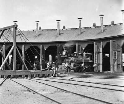 Just east of the Machine shop is the Roundhouse, 316 feet in diameter and containing stalls for forty-four engines.
