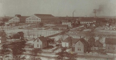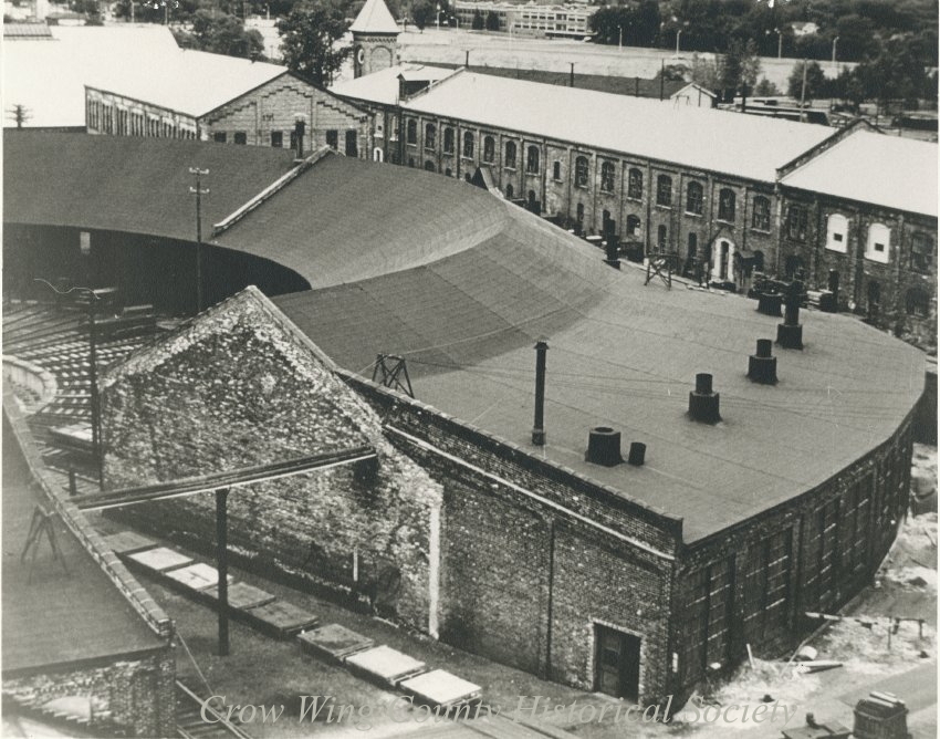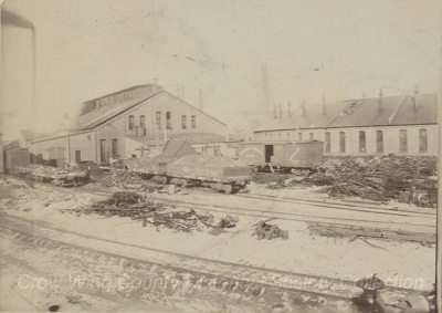 The first manufacturing establishment of any extent to be inaugurated in the City of Brainerd was the Northern Pacific shops. They are the largest and most complete of any similar works in Minnesota. While nominally intended for use as repair shops for the freight and locomotive departments, they still have the capacity for complete construction and a new locomotive of the best pattern and design could be turned out on short order. They are the principal repair shops east of Livingston, Montana and have virtually all of the locomotives and freight rolling stock of 2,000 miles of road to keep in repair. The works have a capacity for the employment of 1,200 men, 630 now being upon the rolls. The buildings are located in what is known as East Brainerd, about three-fourths of a mile east of the railroad bridge, on both sides of the main line track to Duluth.