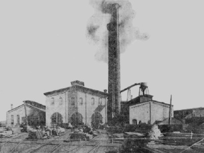 The Oil House is located south of the track and west of all the buildings named, is 45x62 feet, and like the rest fire proof. It is two stories high and contains six huge tanks on either floor, those on the lower floor having a capacity of 18,000 gallons each, while those on the second floor each hold 12,000 gallons. Immense steam pumps are used to convey the oil from the cars to the different tanks.
