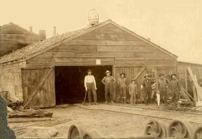 Located west of the Foundry, the Pattern Storehouse is 40x60 feet; this building is where all the patterns for iron and brass castings for locomotives and cars are kept.